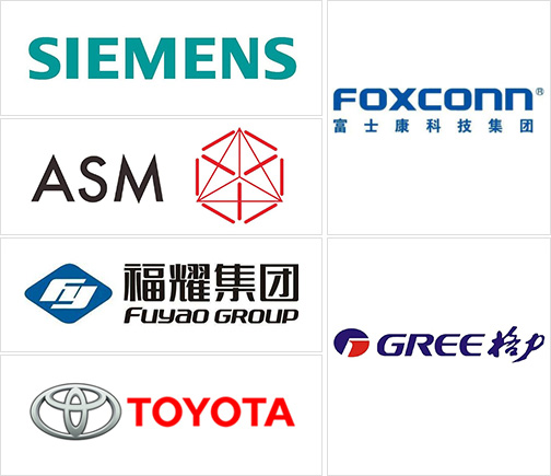 眾多國(guó)內(nèi)外知名企業(yè)見(jiàn)證:富士康、格力、美的、赫比、福耀、東風(fēng)、豐田、中國(guó)一汽,住友,松下,格蘭仕、西門(mén)子、廣東宏遠(yuǎn)等。